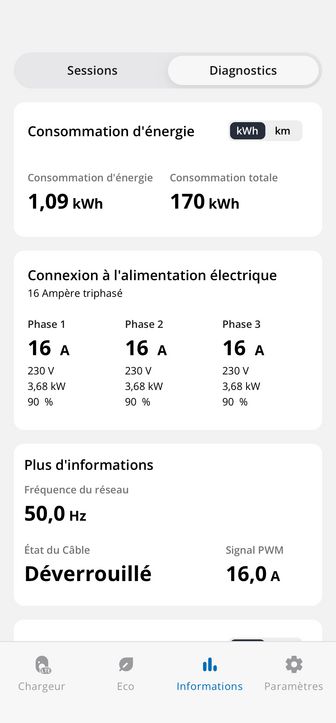 Commutation monophasée/triphasée via l'application (à partir de la version matérielle V3) - Prise